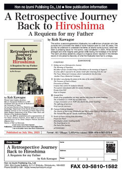 The reality of Hiroshima will fade over time, and there is a risk that people will eventually forget it. We must pass on our personal experience to the next generation to prevent such a thing from happening. This may be the last task that God has given me as a second-generation A-bomb victim. With that in mind, I was determined to set out. (From the Foreword)